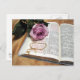 Cartão Postal Bíblia e Rosa púrpura com corrente cruzada