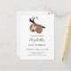 Convite de primeiro aniversário de preguiça fofa e adorável para bebês meninos. Ilustração digital por Kristine Lee. Para mais, visite www.kristineleedesigns.com
