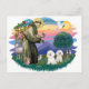 O santo paterno dos animais e uma figura amada que atravessa linhas denominacionais, Ruas. Francis é mostrado aqui com duas Frise Bichon. A figura do próprio Santo Francisco foi adaptada da obra-prima do 14 século de Giotto.