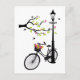 Cartão Postal Bicicleta velha com candeeiro, cesto de flores, pá