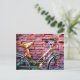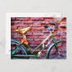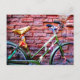 Cartão Postal Bicicleta Verde Debruçando-se sobre uma Parede de
