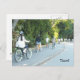 Uma captura divertida de um grupo de turistas a andar de bicicleta por um caminho.