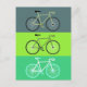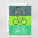 Cartão postal com tema de bicicleta. Três bicicletas em tons de verde.