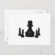 Grande peão de xadrez preto cercado por quatro pequenos reis de xadrez isolados sobre o fundo branco. Tomando a grandeza para a grandeza.