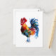 uma pintura aquosa tradicional de um galo grande e colorido ou de frango macho num cartão postal.