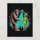 Essa imagem caprichosa ilustra um encontro amigável entre dois seres lendários: Pé Grande e alienígena. A cena, colocada contra um céu noturno estrelado com silhuetas de pinheiros, mostra Pé Grande e a alienígena apertando as mãos sob o feixe de um OVNI pairando acima. Pé-grande, coberto de pelo marrom, fica à esquerda enquanto a alienígena verde, humanoide, com uma cabeça grande e olhos negros, fica à direita. A combinação dessas figuras icônicas em uma reunião pacífica adiciona uma reviravolta divertida a ambos os mitos, fazer-a uma peça fascinante e humorística para os entusiastas do inexplicado.