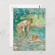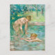 Baigneus (1892) de Berthe Morisot retrata uma cena serena de mulheres banhando, capturando a atmosfera relaxada do momento com seu estilo impressionista assinado. Nessa pintura, Morisot utiliza experientemente pinceladas leves para retratar as figuras de dois banhistas na luz do sol macia e polida. As mulheres estão imersas num cenário natural, possivelmente ao lado de um rio ou lago, com seus corpos fundidos em tons fluidos e harmoniosos que evocam um senso de calma e intimidade. A paleta de cores é dominada por blues macios, verdes e brancos, criando uma atmosfera etérea, enquanto a escova enfatiza a beleza natural da forma feminina. A representação de Morisot destes banhistas reflete a sua exploração da experiência feminina em contextos domésticos e ao ar livre. Use as ferramentas de design para adicionar texto personalizado ou personalizar a imagem.
