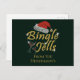 Bingle Jells novelty design com Bingle Jells em pontos de letra ouro amarelo desenhados para simular a arte cristalina com um chapéu vermelho de Santa e um copo de cocktail martini embelezado com faíscas brancas. Preparado em verde-escuro. Personalize com seu nome ou mensagem em ouro amarelo.