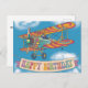 Cartão Postal Biplano voando sobre faixa de aniversário feliz