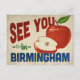 A charming Birmingham Alabama vintage travel postcard featuring a lovely red apple, along with fun retro style text that says, "See you in Birmingham"