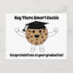 Um design de formatura fofo e engraçado com um biscoito de chocolate chip usando um chapéu de formatura. O texto diz, "Ei, Biscoito Inteligente" e "Parabéns pela sua formatura!" O texto pode ser alterado e personalizado para atender às suas necessidades!