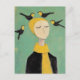 Cartão Postal Black and Yellow Birds on Her Head Whimsy Painting