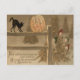 Cartão Postal Black Cat Jack O Lanterna Pumpkin Haystack