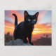 Cartão Postal Black Cat Silhouette at Sunset Postcard