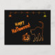 Cartão Postal Black Cat Silhouette Neon Happy Halloween