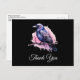Obrigado postal com uma imagem de um corvo preto com asas roxas cor-de-rosa. Uma água cor-de-rosa por trás deste adorável pássaro místico.