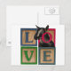 AMOR soletrado com bebês bloqueados. Uma cabra espada a saltar a cabeça é curiosa. Um presente divertido para amantes de cabras
