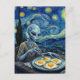 Cartão Postal Blue Alien Eating Fried Eggs Faux Van Gogh