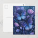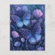 Cartão Postal Blue and Purple Butterfly in Starry Floral Garden