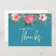 Cartão Postal Blue Bat Mitzvah Chic Script Dourado Floral Obriga