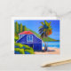 Cartão Postal Blue Beach House e Palm Tree | Manter em contato