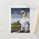 Cartão Postal Blue Merle Rough Collie no Castelo Eilean Donan -