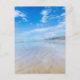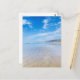 Este cartão-postal mostra uma fotografia de uma praia em Oregon com um belo céu azul brilhante com nuvens e o reflexo do céu no oceano. Arte original de presentes do mundo das ondas