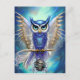 Coruja Steampunk Azul, esta design apresenta uma coruja azul com olhos azuis.