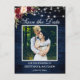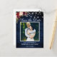 Cartão Postal Blue Wood Lights Burgundy Floral Salvar a Data