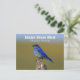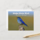 Este cartão-postal legal apresenta uma foto impressionante de Mountain Bluebird com o texto Idaho State Bird, Mountain Bluebird." Fotografia criada pela fotógrafa Maria Jeffs, prêmio vencedora.