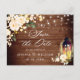 Cartão Postal Blush Rosas Rustic Wood Weding Date (Salvar data)