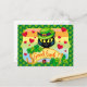 Rua. Cartão de saudação do dia de Patrick com gato sortudo preto de chapéu verde