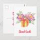 Cartão Postal Boa sorte Peônias aquarela Fofo
