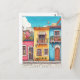 Um cartão-postal ilustrado, encantador e vibrante, que mostra as charmosas ruas de Bodrum, na Turquia. A cena apresenta casas mediterrânicas lindamente texturizadas pintadas em tons brilhantes de amarelo, azul e vermelho, adornada com balcões de madeira rústicos, janelas decorativas e avisos confortáveis. O caminho de pedra enrolada e as luzes de fadas somam-se à atmosfera pitoresca, enquanto as borboletas que fluem e o verde-luxuoso completam o ambiente quente e convidativo.