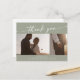 Cartão Postal Boho Chic Sage Foto de Casamento Verde Obrigado