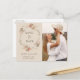 Este elegante cartão de ponto apresenta uma coroa circular aquosa com uma fotografia de um casal feliz, você pode personalizar os detalhes e adicionar sua foto facilmente, há mais opções de cartões salve a data disponíveis na mesma coleção.