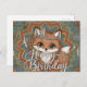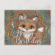 A wonderfully whimsical and adorable Happy Birthday card featuring a cute, cartoon fox wearing a bohemian-style headband. The design is set against a vibrant, intricate mandala background with dangling dreamcatchers. Perfect for sending warm wishes to kids, friends, or anyone who loves the boho, woodland, or spirit animal aesthetic!