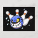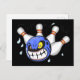 Bola de boliche zangada com pinos de Boliche, carta-postal divertida para esporte.