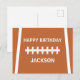 Cartão postal de feliz aniversário de futebol personalizado legal que parece uma bola com o seu texto personalizado no centro. Adicione o nome do seu jogador neste incrível cartão postal esportivo.