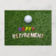 Bola de golfe com uma feliz aposentadoria no cartão postal verde
