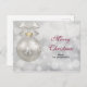 Um cartão postal com um design mágico de feriado. Apresentando uma bola prateada de Natal com decorações em flocos de neve e terminando com um bonito arco prateado. O fundo é uma ilustração de luzes de prata com estrelas elegantes espalhadas por toda parte.