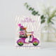 Uma mulher super divertida, que imprime uma bolsa de moda em patinete.