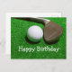 Cartão Postal Bolinha de golfe com cunha de areia com grama verd