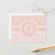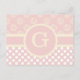 Sua inicial de monograma personalizado de solteiro destaca esta bolinhas branca em rosa-rosa e amarelo no cartão-postal design de cor-de-rosa. Excelente modo de enviar uma nota personalizada especial aos amigos ou à família.