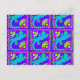 Bolinhas Funky Lizard Pattern Animal Designs com azul-indigo, verde limão, roxo-rosa magenta e azul-lacrimejo. Estes lagartos de bolinhas neonatal únicos estão bordados com uma borda de ziguezague.
