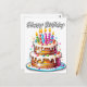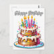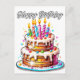 Este cartão postal único apresenta uma ilustração colorida de um bolo de aniversário festivo. Este cartão postal faria uma saudação de aniversário verdadeiramente maravilhosa para amigos, familiares e colegas de trabalho.