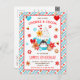 Este convite fofo e festivo apresenta uma xícara de bolinhas azuis com um adorável pinguim. Está recheado com chocolate de cacau quente, creme chantilly e confeitos. Ao lado estão biscoitos de gengibre em forma de estrela e floco de neve, redemoinhos de doce e bagas de azevinho. O texto combina fontes negrito e sem serifa para um visual elegante e moderno. Isso é perfeito para uma festa de aniversário com tema de Natal.