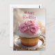 Cartão Postal Bolo de Aniversário com Rosas de Creme Rosa