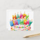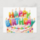 Cartão postal de bolo de aniversário fofo e colorido e velas. Envie isto para alguém para desejar um feliz aniversário e alegrar o dia dela.