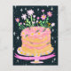 Cartão Postal Bolo de Aniversário Divertido com Flores Rosa em G